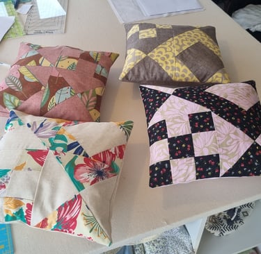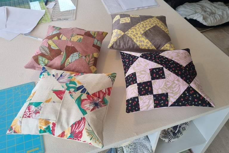 We’ll create various patchwork blocks and assemble them into a cushion cover.